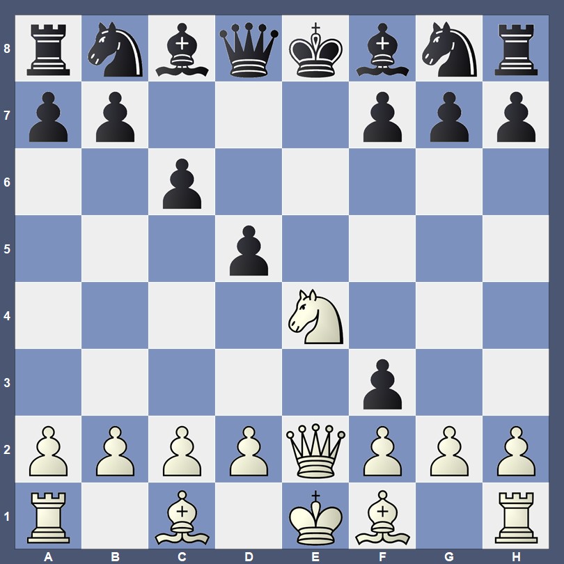 L’esempio fondamentale che segue, tratto dal Diagramma 156 di Bain, illustra questa meccanica con brutale efficacia. Nell’esempio, il Cavallo bianco in e4 è pronto a scatenare la tattica contro il Re nero in e8, supportato dalla Donna bianca in e2.
