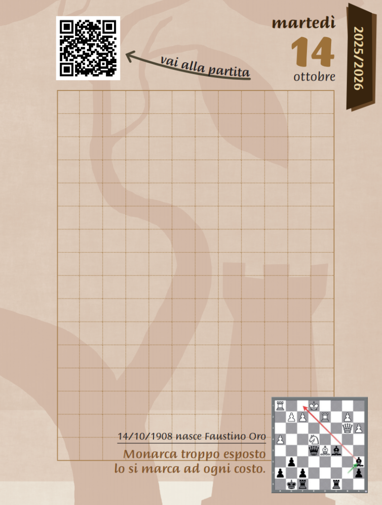 Nella Partita Italiana (1.e4 e5 2.Cf3 Cc6 3.Ac4), il Bianco non aggiunge altre mosse di pedone; sviluppa sistematicamente. Alfiere attivo, Cavallo centralizzato, preparazione del dominio sulla casa f7. Il Nero, dalle sue spalle, ha il compito di controbattere mantenendo la struttura. Ogni mossa ha scopo definito: i pezzi non si muovono mai “tanto per muoversi“.
